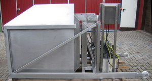 Kippanlage aus Edelstahl für Lebensmittelindustrie. Passend für Euro-Fleischkisten.