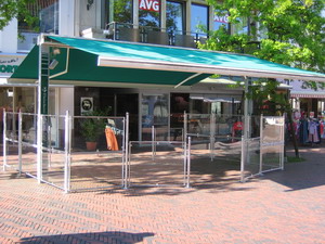 Markise mit Edelstahlabtrennung mit Plexiglasscheiben