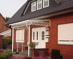 Eingangsüberdachung mit 2 Säulen weiß beschichtet mit VSG Sicherheitsglas