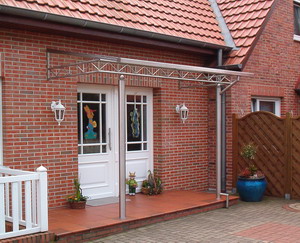 Eingangsüberdachung mit 2 Säulen aus Edelstahl mit VSG-Sicherheitsglas